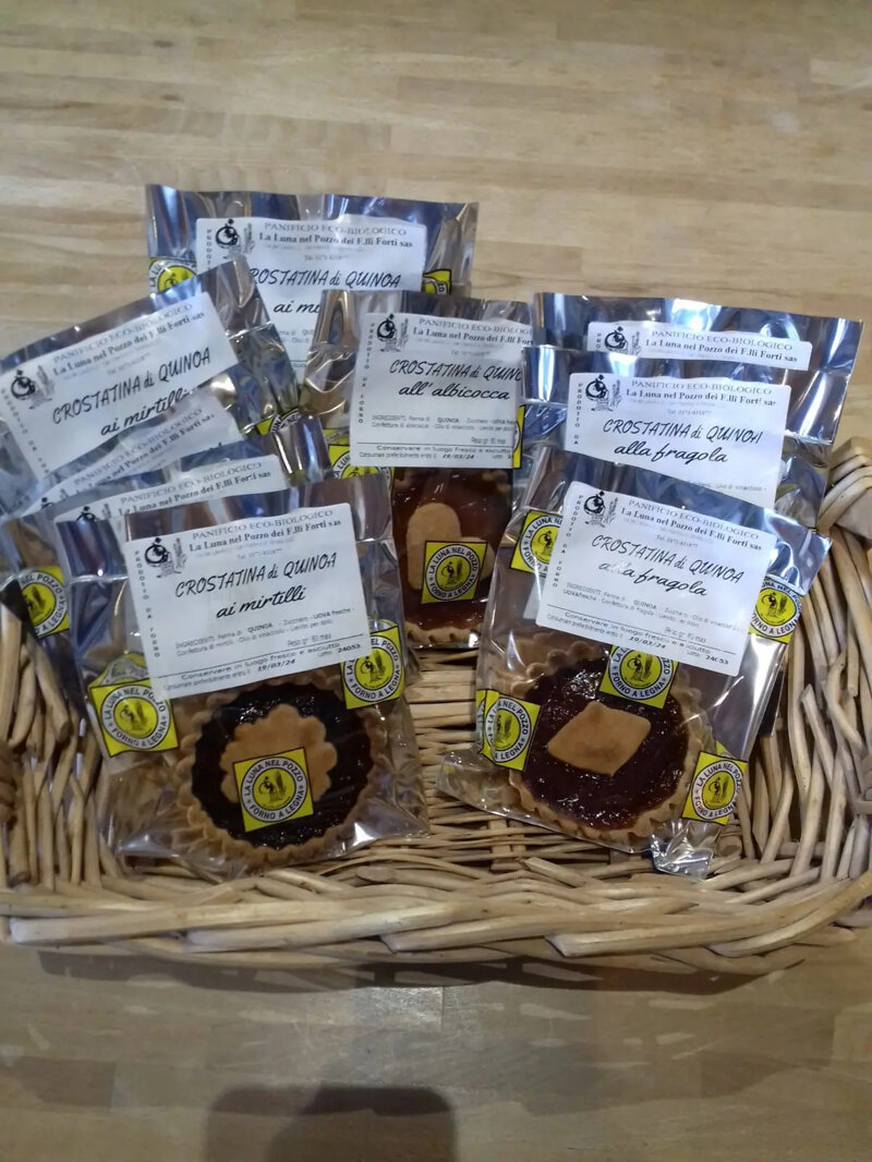 E' un piccolo capolavoro di pasticceria che celebra la naturalezza degli ingredienti e la ricchezza dei sapori. Si presenta con una base morbida e friabile, che accoglie le confettura di albicocca, mirtillo, fragola, ciliegia da specificare nelle note nell' ordine al momento della conferma.